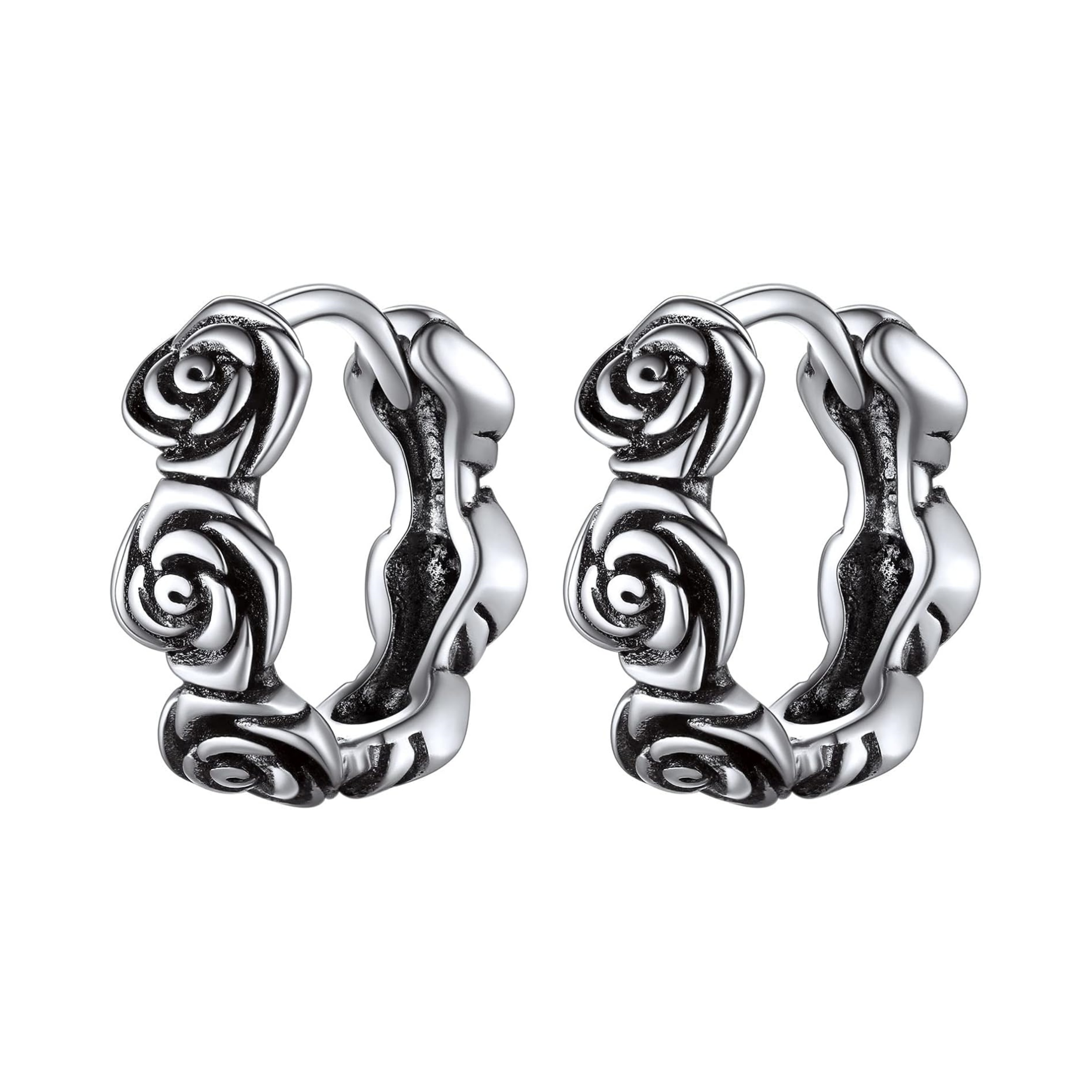 Vintage Rose Flower Huggie Hoop Earrings