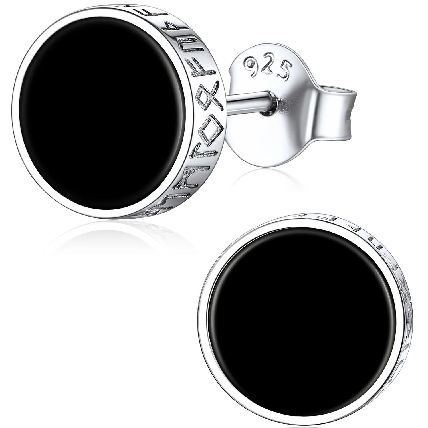 Black Onyx with Viking Rune Stud Earrings for Men, memorial gift