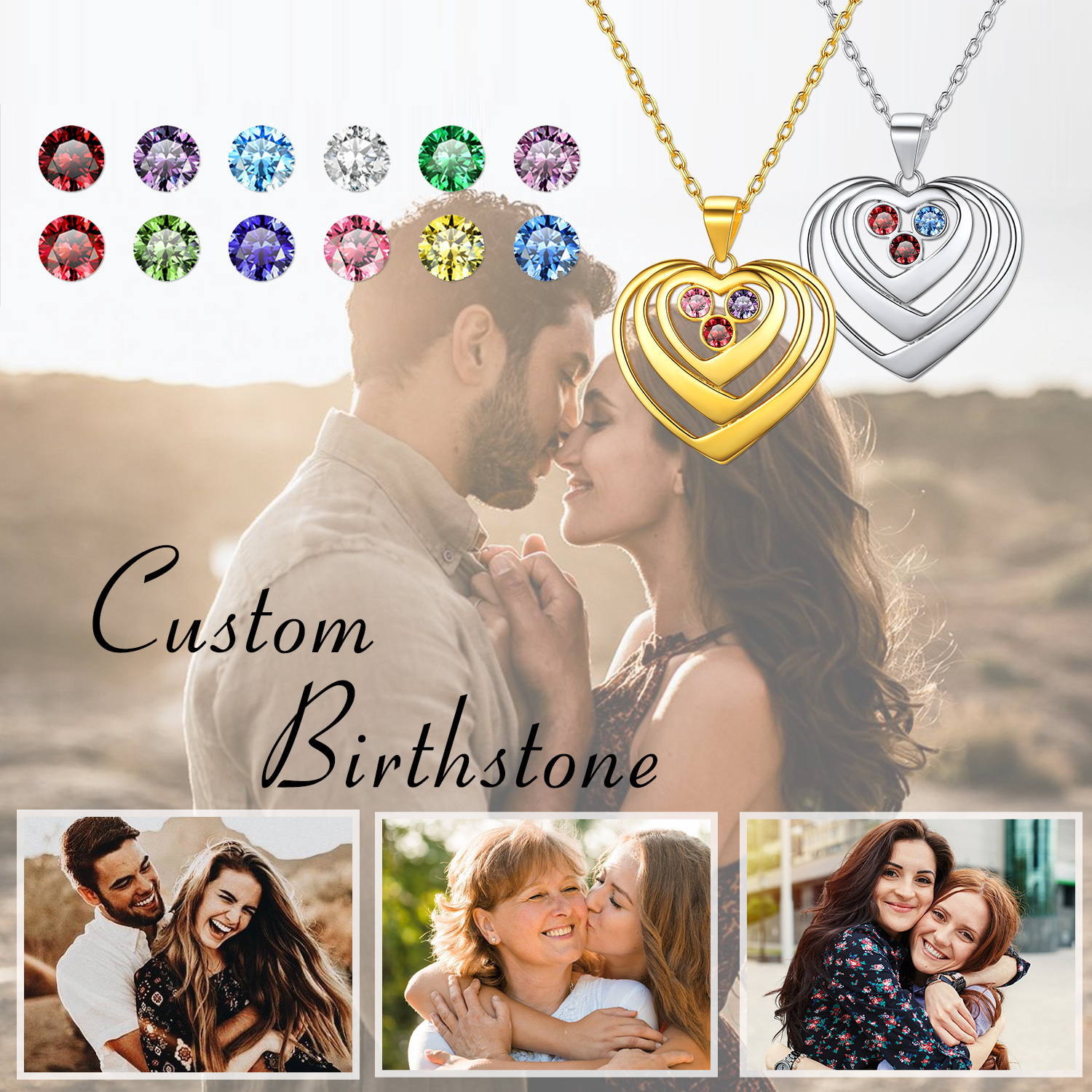 Heart surround Birthstone Engraved Necklace for Women, Ladies, Mother, Friends, Couples, girlfriend