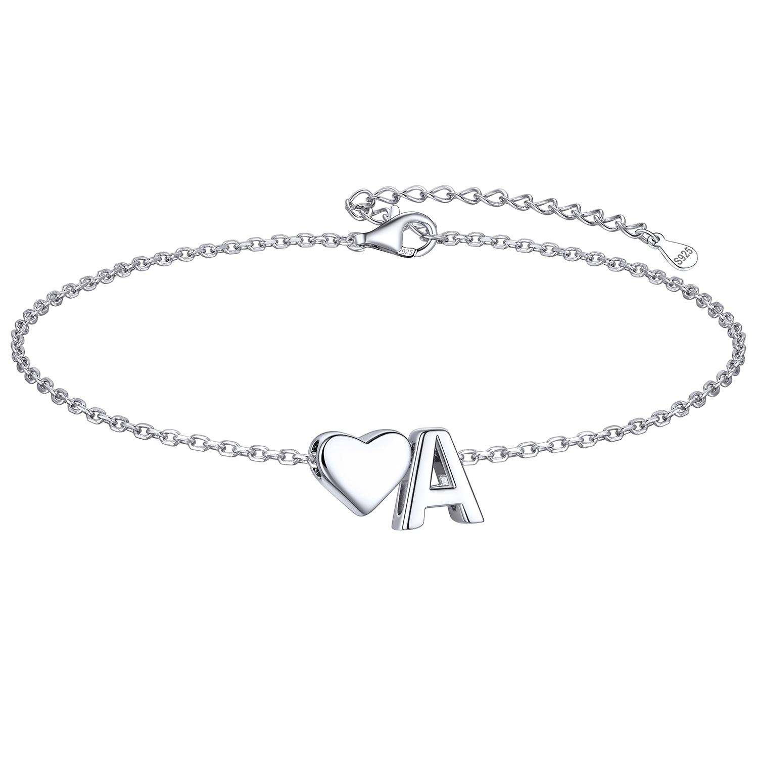 Classic Initial Letters with Heart Bracelet for Women, Ladies, Couples, girlfriend, wife, sterling silver jewlery, initial bracelet, gift idea