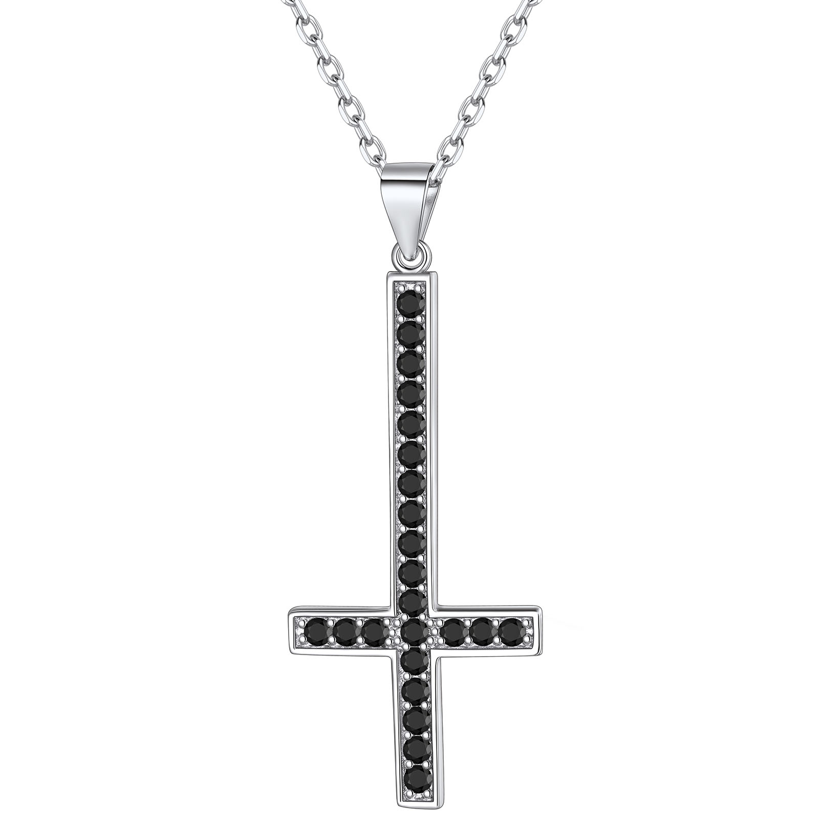 Black Cubic Oxide Inverted St. Peter's Cross Necklace with Fine Chain Details: Dimensions, Hypoallergenic, Lobster-Claw-Clasps