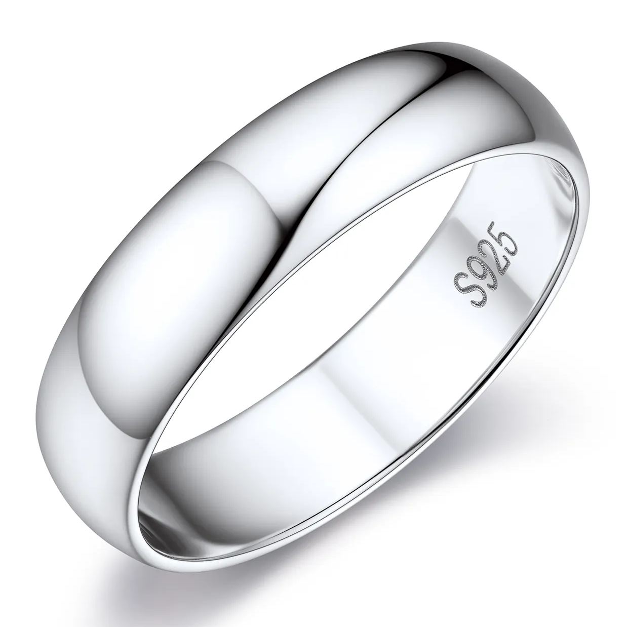 Sterling Silver Plain Dome High Polished Wedding Band Rings