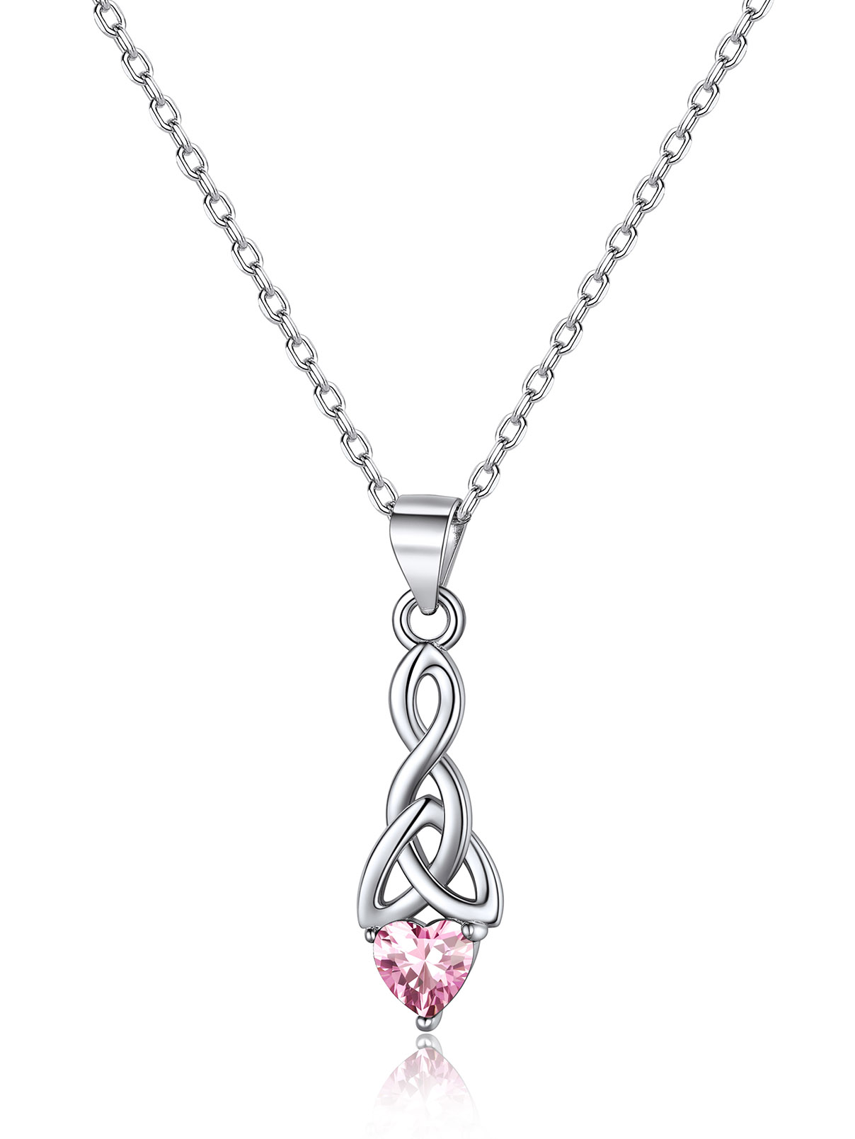 Sparkling Heart Birthstone Celtic Knot Pendant Necklace for Women, october birthstone, Pink Tourmaline Jewelry, Libra Birthstone, Scorpio Birthstone, sterling silver Jewelry, gift idea